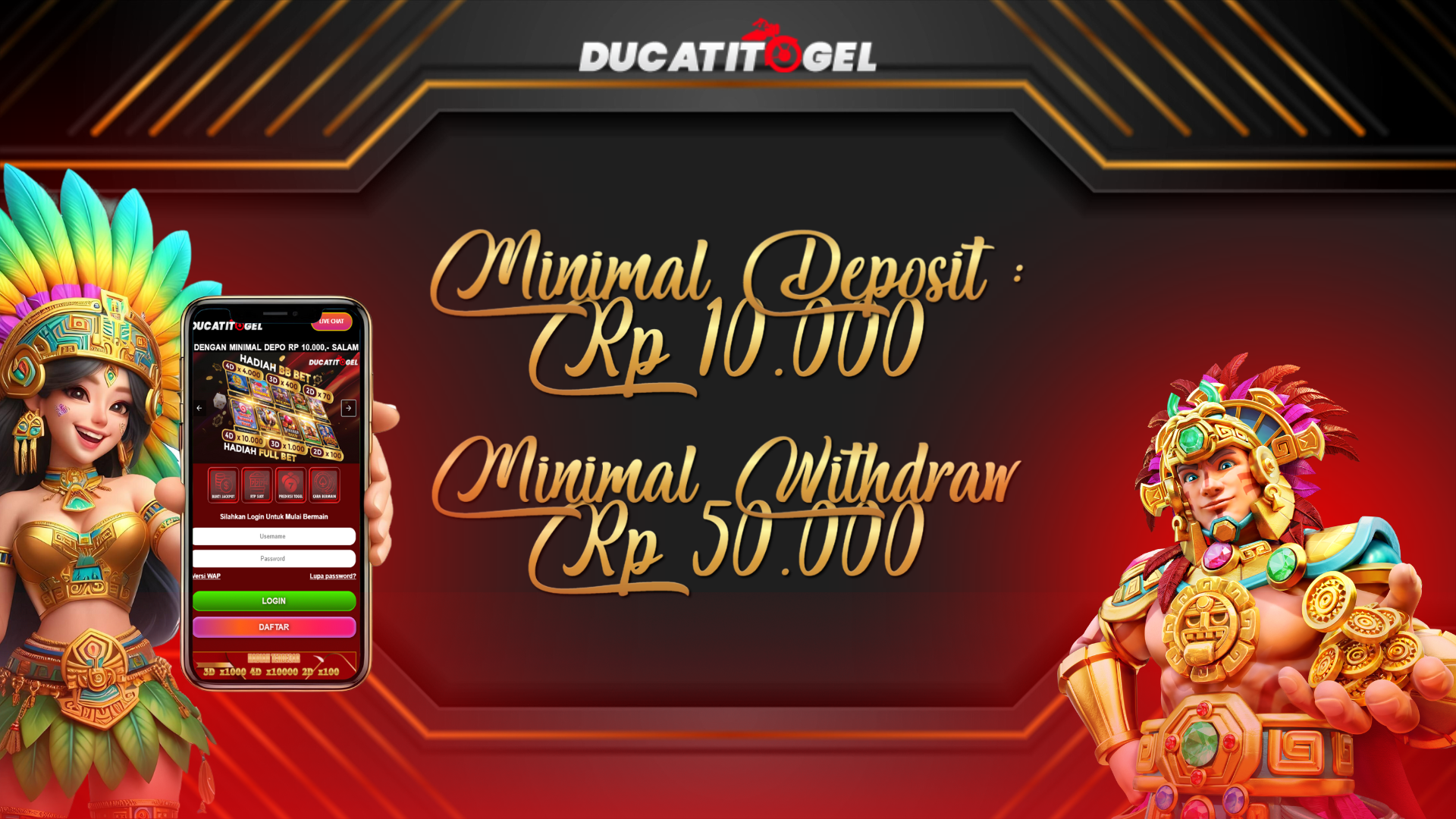 Tidak hanya pelayanan wd tercepat, modal minimal yang kamu harus miliki untuk bermain atau betting juga sangat kecil. Dengan hanya Rp 10.000 saja, kamu bisa langsung melakukan deposit sehingga para pemain dapat dengan mudah bergabung di Ducati Togel tanpa harus memikirkan modal bermain.